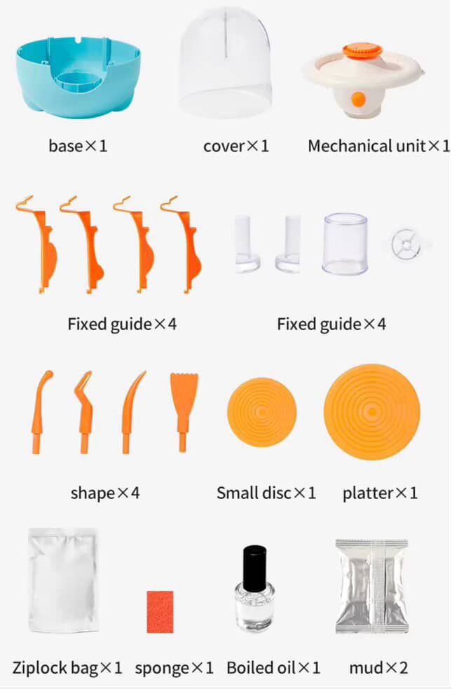| Included Components | Pottery wheel, tools, brushes, glaze, sponge, tray |