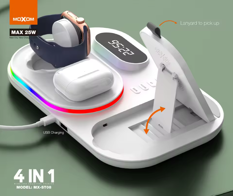 Streamline your charging experience and upgrade your space — with the Moxom 4-in-1 Wireless Charging Station, where convenience, style, and smart power come together effortlessly.