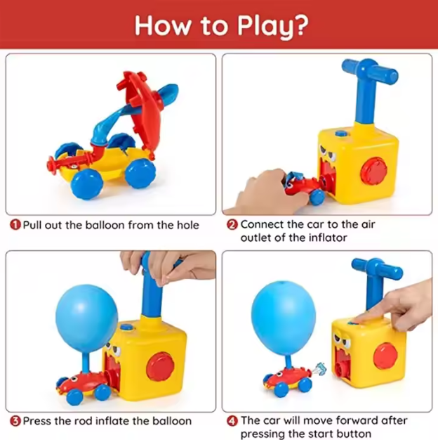 Hand‑Pressed Air Power: Press to build air pressure, then release to watch the car zoom forward.